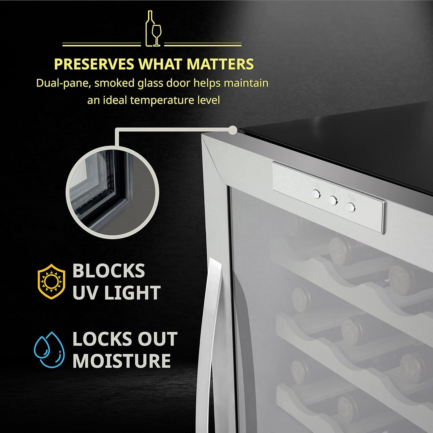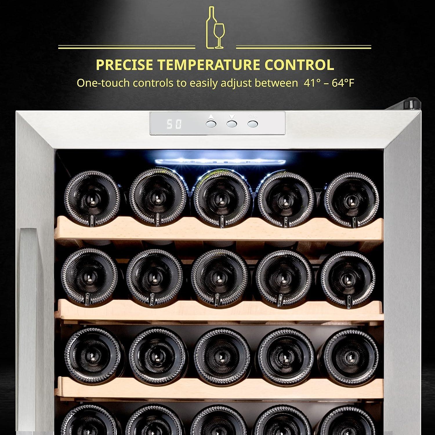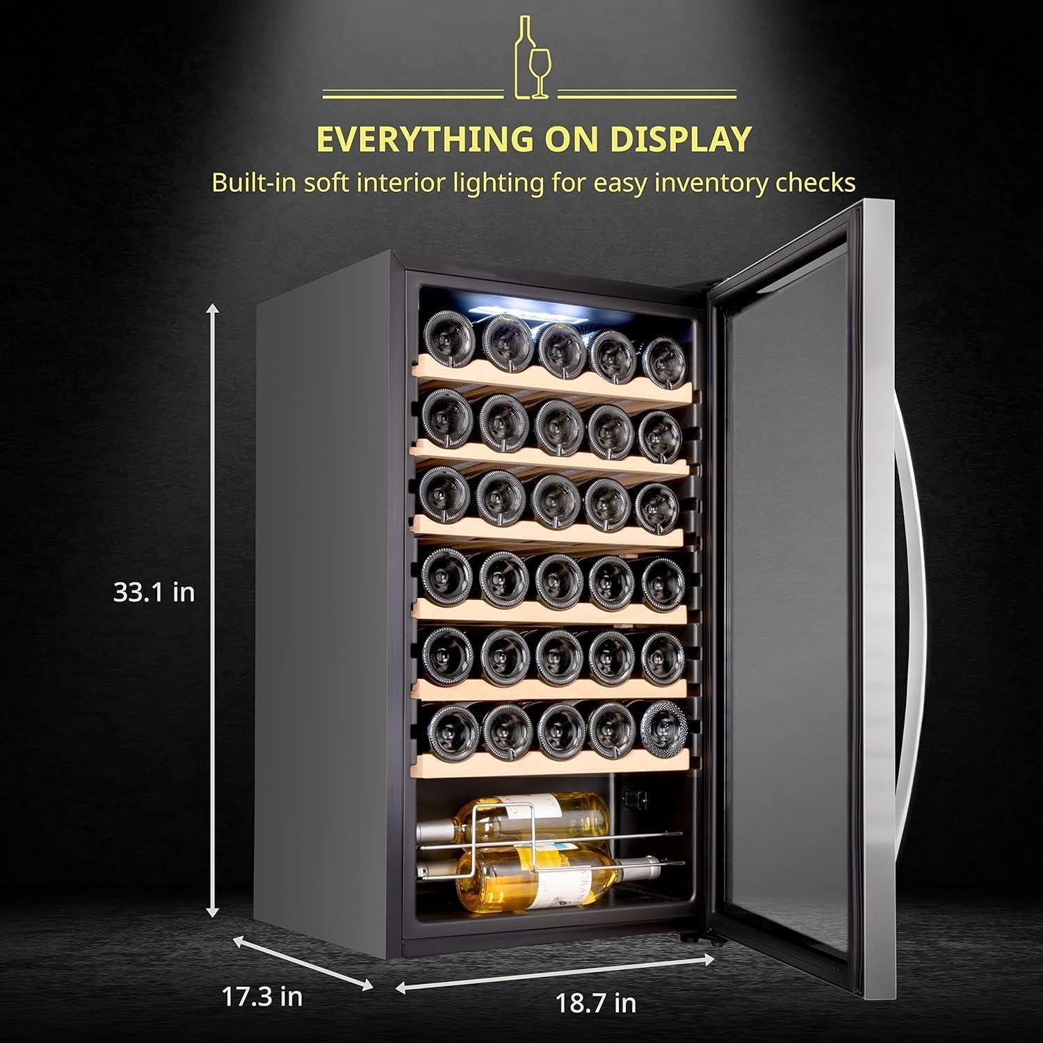 Schmecke 34 Bottle Compressor Wine Cooler Refrigerator w/Lock | Large Freestanding Wine Cellar | 41f-64f Digital Temperature Control Wine Fridge For Red, White, Champagne or Sparkling Wine - Black(Stainless Steel)
