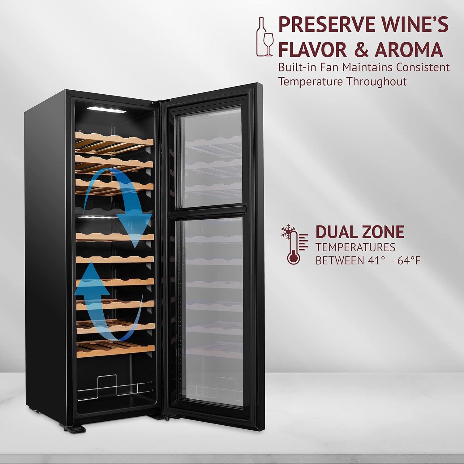 imageSCHMCK 44 Bottle Dual Zone Wine Cooler Refrigerator  Large Freestanding Wine Cellar  41f64f Digital Temperature Control Wine Fridge For Red White Champagne or Sparkling Wine  Black